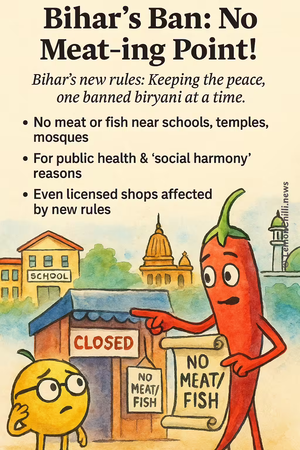 Bihar's latest policy is serving up a fresh ban on meat and fish sales near schools and temples. Is ...more