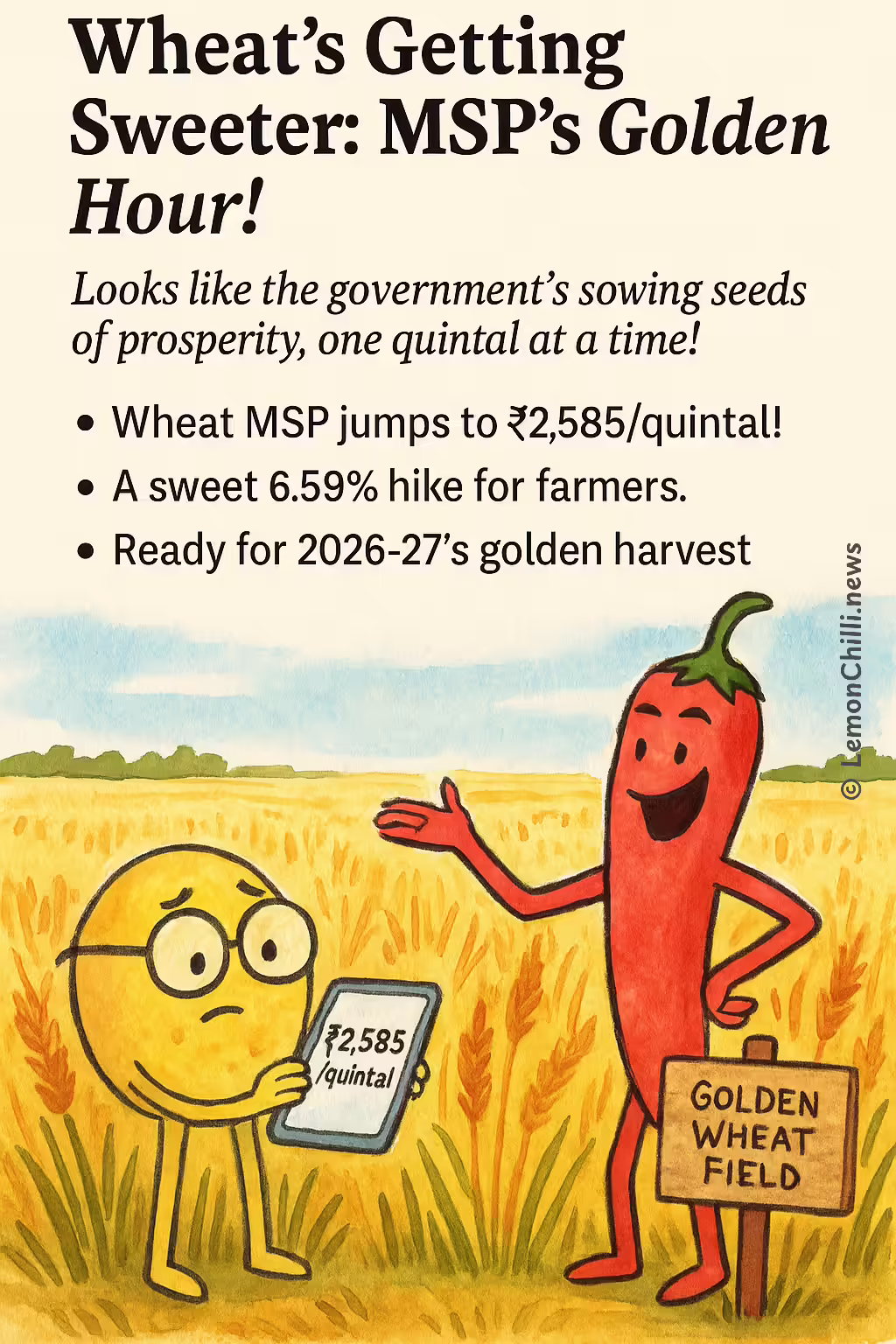 Good news for farmers! The Cabinet just hiked wheat MSP to Rs 2,585 per quintal for 2026-27. Get rea...more